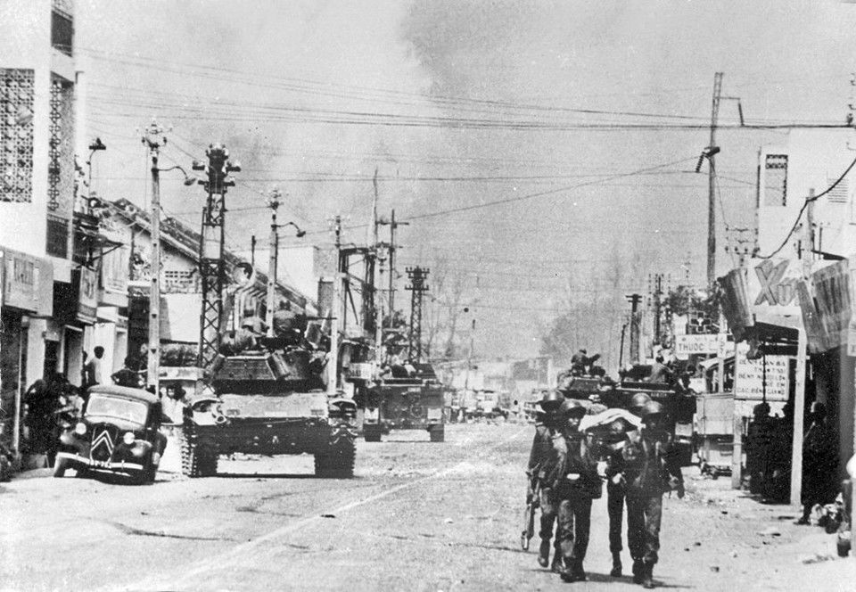 Đêm 30 rạng sáng 31/1/1968 (mồng 1 rạng sáng mồng 2 Tết), quân và dân Đồng bằng sông Cửu Long đồng loạt tiến công và nổi dậy ở hầu hết các thành phố, thị xã, thị trấn... đưa chiến tranh vào tận hang ổ và cơ quan đầu não của Mỹ ngụy. (Ảnh: Tư liệu/TTXVN phát)