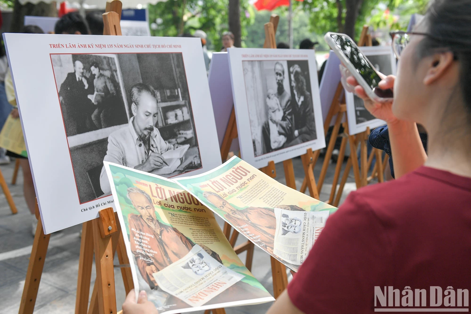 Lễ khai mạc Triển lãm ảnh “Rạng rỡ tên Người” và ra mắt số báo Nhân Dân Cuối tuần đặc biệt, nhân kỷ niệm 135 năm Ngày sinh Chủ tịch Hồ Chí Minh đã diễn ra chiều 16/5, tại trụ sở 71 Hàng Trống (Hoàn Kiếm, Hà Nội). Dù mới khai mạc, nhưng sự kiện đã thu hút đông đảo công chúng tới tham quan, trải nghiệm, đặc biệt là các bạn trẻ.