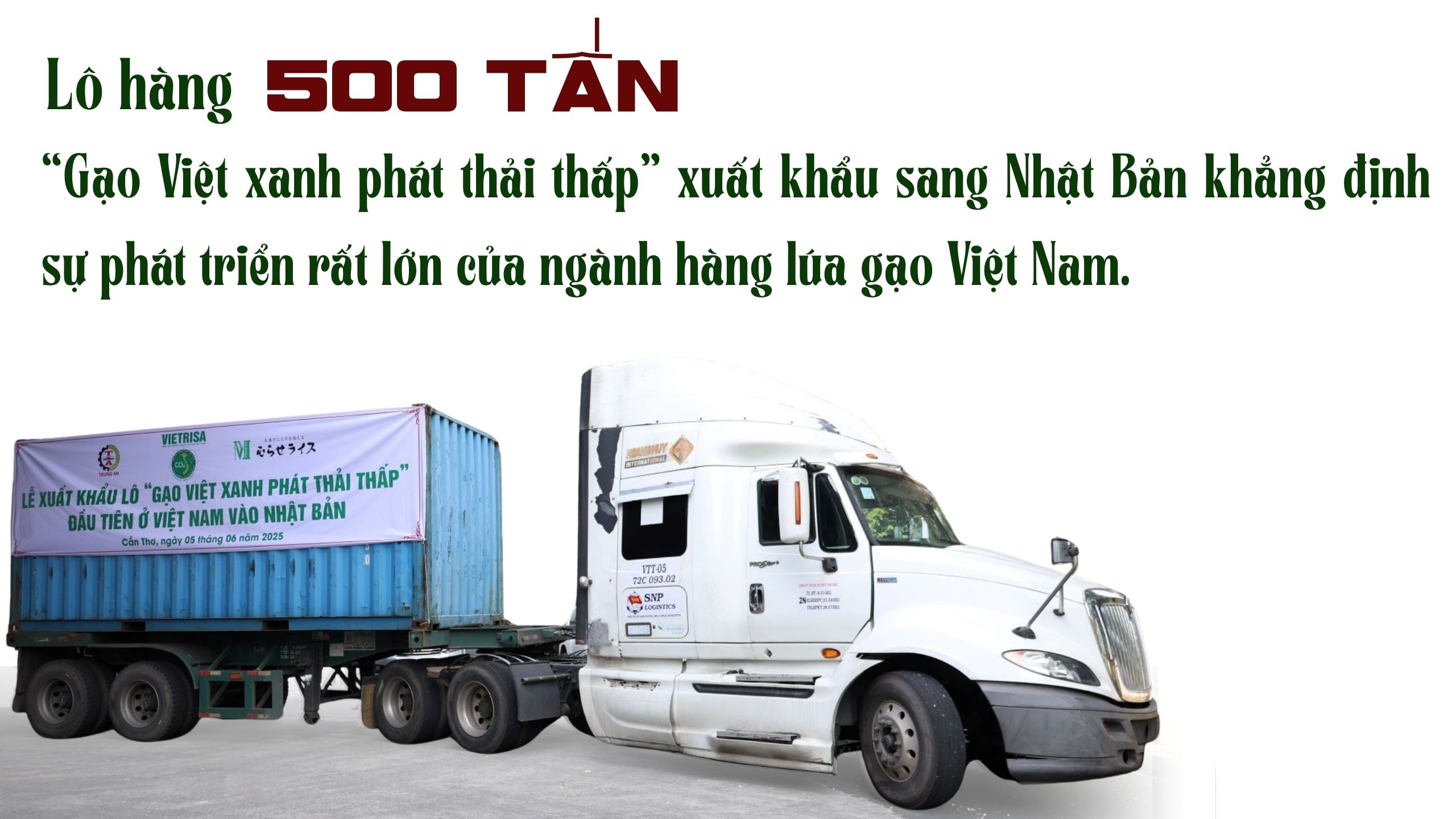 Hiệp hội Ngành hàng Lúa gạo Việt Nam (VIETRISA) vừa ra mắt nhãn hiệu “Gạo Việt xanh phát thải thấp” tháng 5 vừa qua và đã bán được 500 tấn gạo đầu tiên ở Nhật Bản với giá 820 USD/tấn gạo. Đây lần đầu tiên Việt Nam và cũng như trên thế giới có nhãn hiệu gạo này, khẳng định sự phát triển rất lớn của ngành hàng lúa gạo.