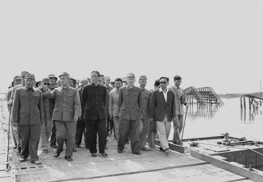 Đồng chí Lê Duẩn, Bí thư thứ nhất Ban Chấp hành Trung ương Đảng thăm cầu Hiền Lương, chiều 30 Tết Quý Sửu (năm 1973). (Ảnh: TTXVN)
