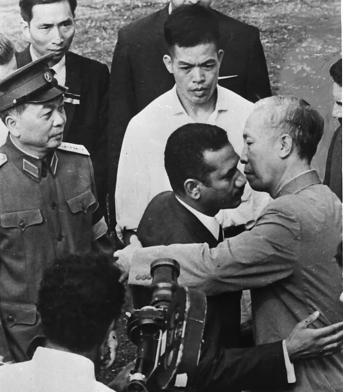 Đồng chí Juan Almeida Bosque ôm đồng chí Lê Đức Thọ, khi dẫn đầu đoàn Đại biểu Đảng và Nhà nước Cuba sang Việt Nam dự quốc tang Chủ tịch Hồ Chí Minh tháng 9/1969. (Nguồn: Báo Granma)