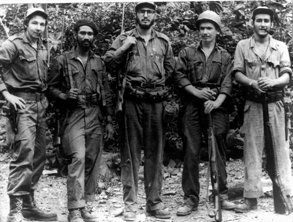 Từ trái qua phải: Đồng chí Raúl Castro, đồng chí Juan Almeida Bosque, đồng chí Fidel Castro, đồng chí Ramiro Valdés và đồng chí Ciro Redondo tại Sierra Maestra. (Nguồn: Trung tâm lưu trữ quốc gia Cuba)