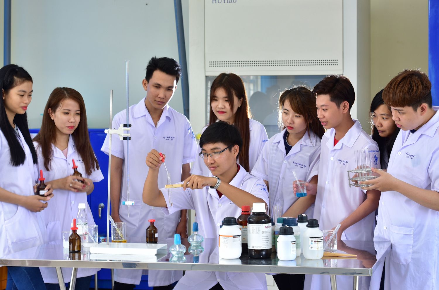 Sinh viên Đại học Sư phạm kỹ thuật Vĩnh Long thực nghiệm khoa học. (Ảnh: vlute.edu.vn/Tạp chí Cộng sản)