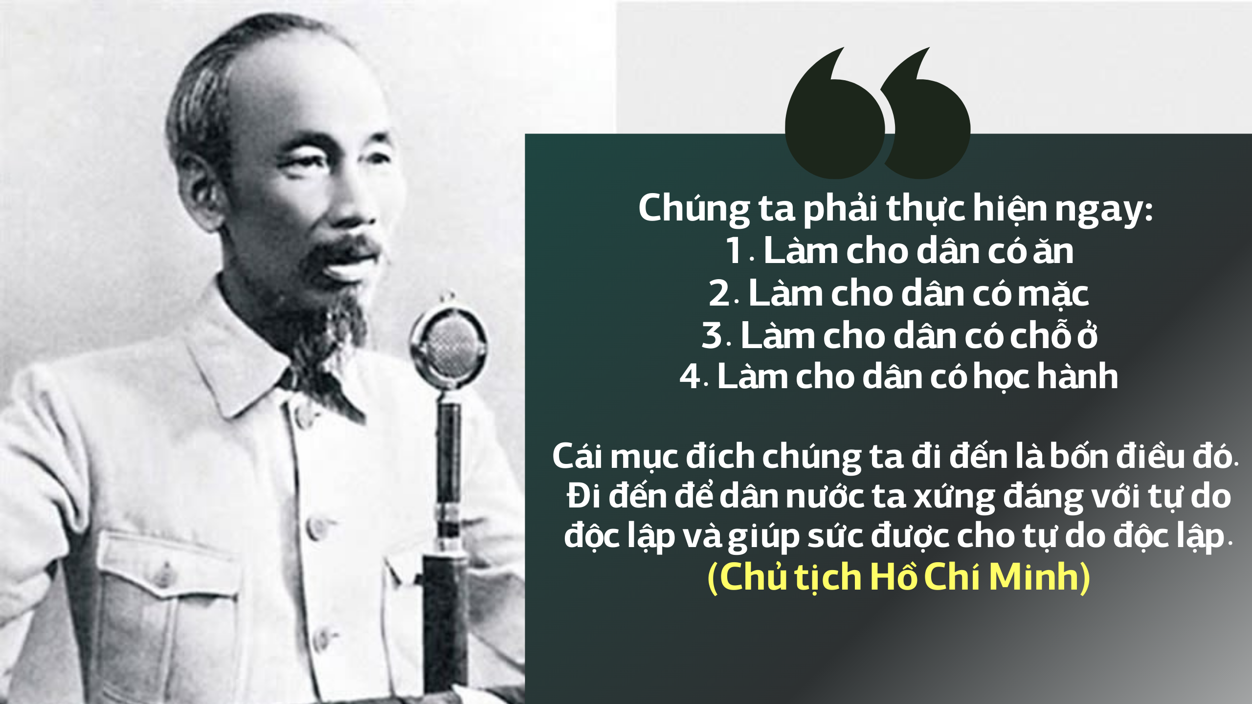 Để hiện thực hóa mục tiêu đó, Chủ tịch Hồ Chí Minh đã đưa ra hàng loạt biện pháp tác động từ các chính sách về kinh tế, chính trị, văn hóa và xã hội,…