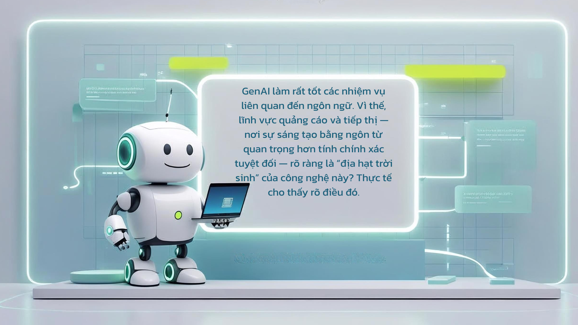GenAI làm rất tốt các nhiệm vụ liên quan đến ngôn ngữ. Vì thế, lĩnh vực quảng cáo và tiếp thị — nơi sự sáng tạo bằng ngôn từ quan trọng hơn tính chính xác tuyệt đối — rõ ràng là “địa hạt trời sinh” của công nghệ này? Thực tế cho thấy rõ điều đó.