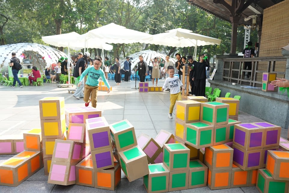 Người lớn và trẻ em cùng vui vẻ khi cùng xem chung một bộ phim hoạt hình, tương tác họa tiết gạch bông một thời, ghép gạch mosaic và cắt ghép những con rối ngộ nghĩnh. Nói như PGS.TS. Lê Thị Kim Ánh (thành viên điều phối sản xuất nội dung Lễ hội Thiết kế sáng tạo Hà Nội 2024, “đến với Lễ hội, chúng ta hãy cởi mở, hãy trở về như một đứa trẻ trong con người chúng ta để khơi dậy, đánh thức sức sáng tạo trong mỗi người".