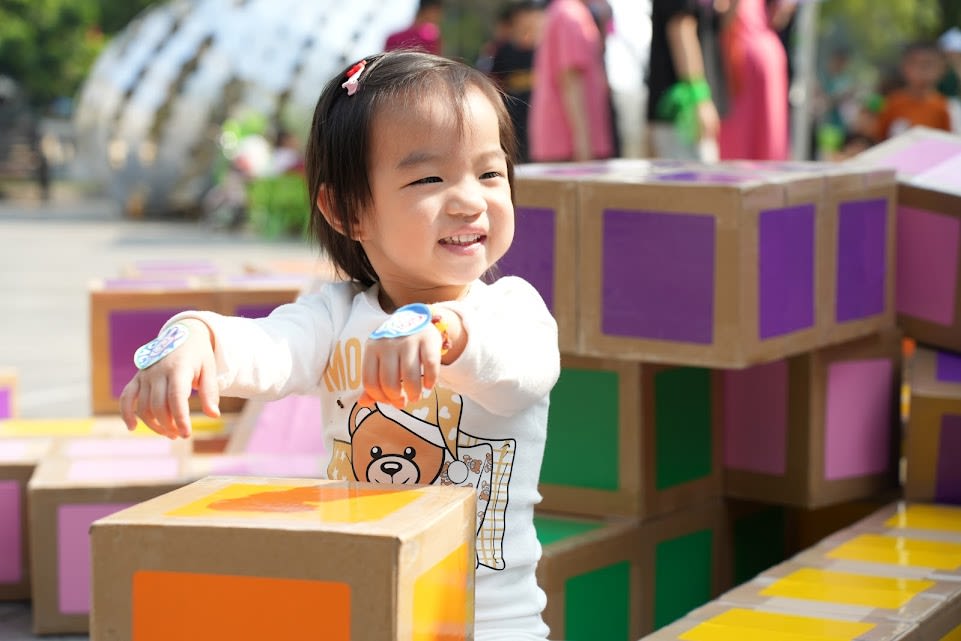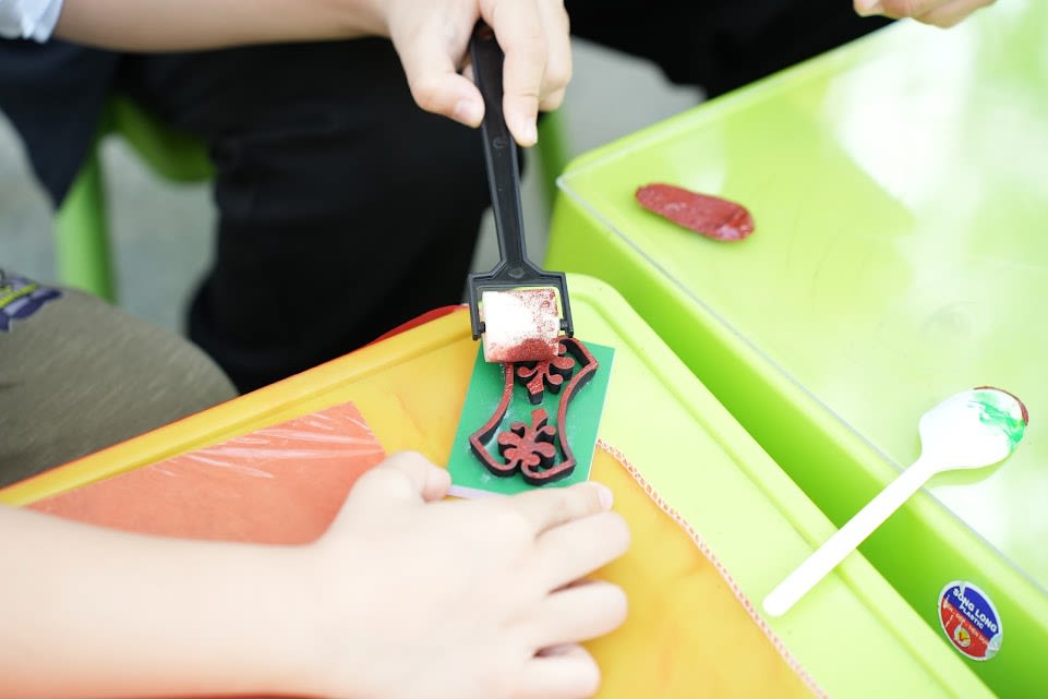 Các em được “sống” và “cảm” cùng/trong di sản. Di sản lại sống cùng cảm xúc và sự sáng tạo của các em thông qua các hoạt động trải nghiệm sờ, chạm, ghép nối, thỏa sức vẽ vời ở các Xưởng in dấu tháng năm, Xưởng ghép gạch và Xưởng rối.