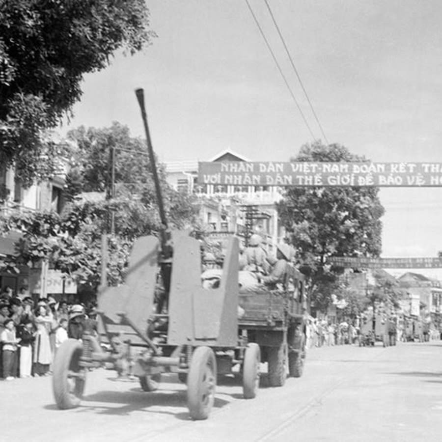 Các đơn vị cơ giới của Đại đoàn 308 tiến về tiếp quản Thủ đô, sáng 10/10/1954. Ảnh TTXVN