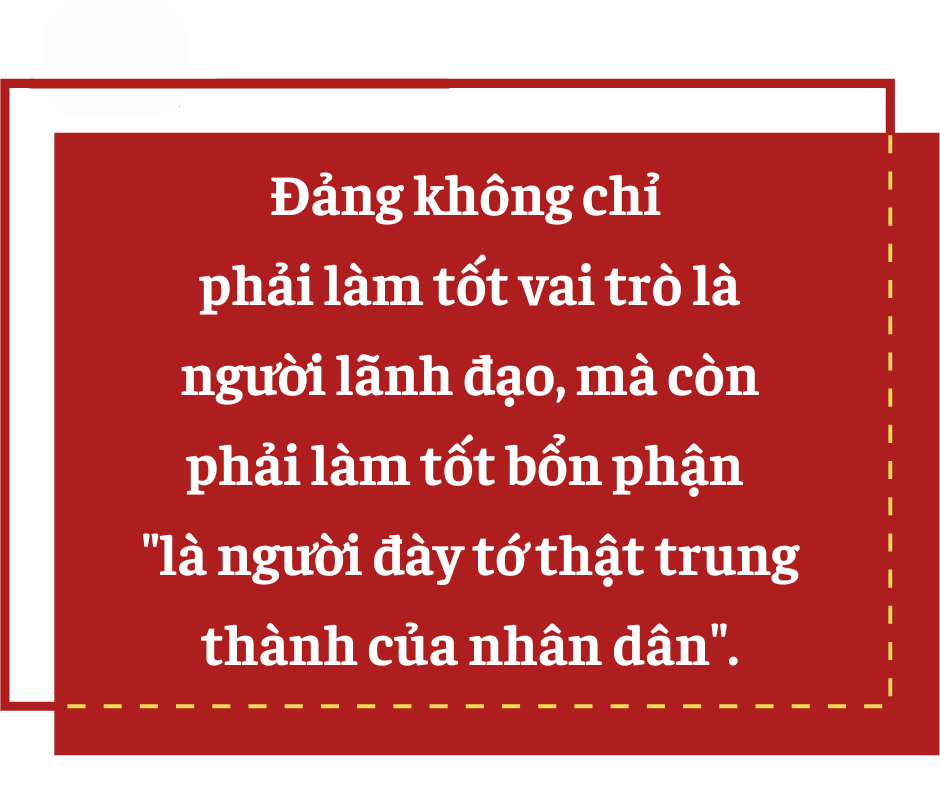 Là một tổ chức lãnh đạo, Ðảng phải có đủ trí tuệ và bản lĩnh chính trị, đề ra đường lối, chủ trương đúng đắn, vượt qua mọi khó khăn thử thách đưa sự nghiệp cách mạng không ngừng tiến lên; thực hiện trọn vẹn mục tiêu, lý tưởng Ðảng đã lựa chọn, xứng đáng với niềm tin tưởng tuyệt đối của nhân dân. Là người "đày tớ", Ðảng và từng cán bộ, đảng viên phải phụng sự Tổ quốc, phụng sự nhân dân vô điều kiện; việc gì có lợi cho dân phải hết sức làm, việc gì có hại cho dân phải hết sức tránh. Ðể có thể làm tốt cả hai phận sự ấy, mỗi đảng viên và cán bộ của Ðảng phải thật sự thấm nhuần đạo đức cách mạng, cần kiệm liêm chính, chí công vô tư. Nghị quyết Trung ương 7 (khóa XI) về "Tăng cường và đổi mới sự lãnh đạo của Ðảng đối với công tác dân vận trong tình hình mới" có ý nghĩa quan trọng với vai trò lãnh đạo của Ðảng. Bởi, hơn bao giờ hết, mỗi cán bộ, đảng viên của Ðảng phải thực sự "hết lòng vì dân", mới "được dân hết lòng vì Ðảng".