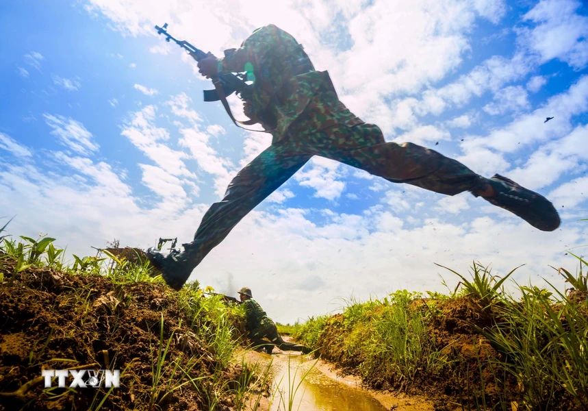 Bộ đội bộ binh tấn công địch tại buổi diễn tập khu vực phòng thủ tỉnh Hậu Giang năm 2019.