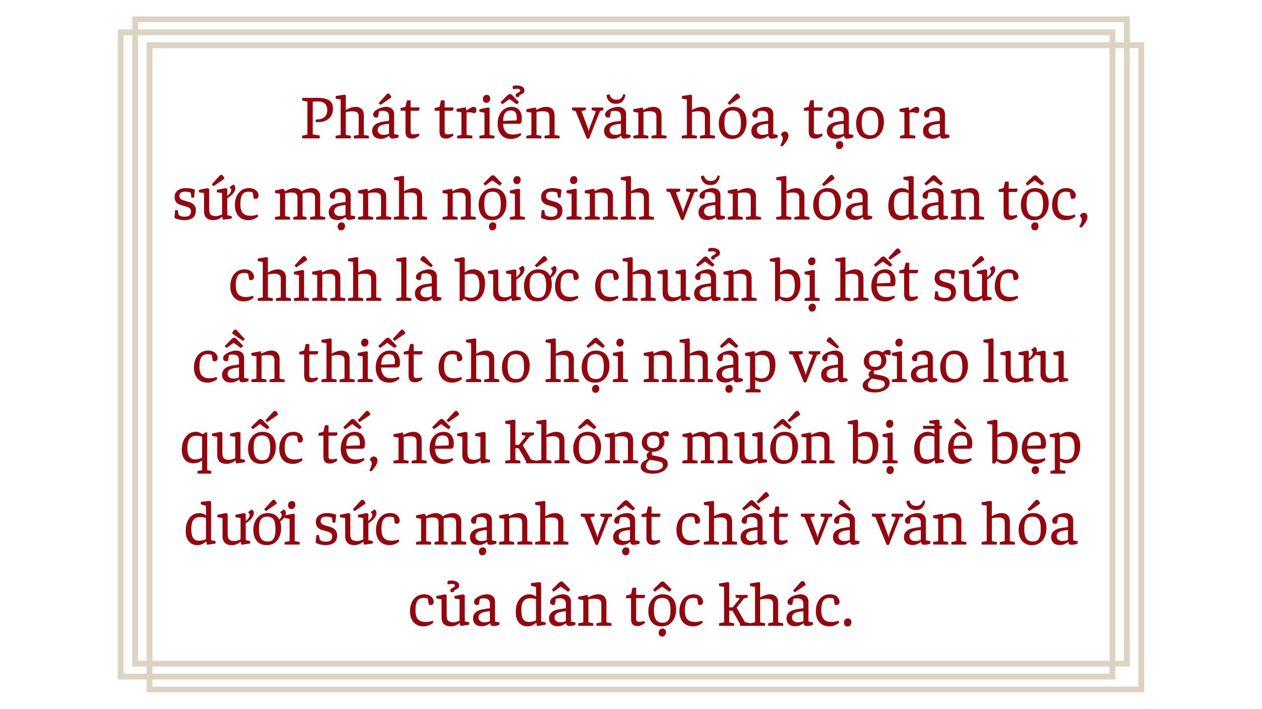 Kinh tế thị trường không ngừng đẻ ra của cải, nhưng ở mặt trái của nó là không ngừng tác động xấu vào đời sống văn hóa tinh thần, lối sống và có thể làm băng hoại xã hội. Chính vì vậy, phát triển văn hóa là nhiệm vụ chiến lược nhằm thúc đẩy kinh tế thị trường phát triển nhanh hơn, bền vững hơn, đồng thời điều tiết, ngăn chặn những biến thái bất lợi do mặt trái kinh tế thị trường gây ra, bảo vệ con người, đem lại trật tự và sự hài hòa cho xã hội. Ở một phương diện khác, giao lưu và hội nhập quốc tế đã trở thành nhu cầu khách quan của phát triển đất nước. Nhưng trong giao lưu kinh tế chẳng có một sản phẩm và dịch vụ nào lại không chứa đựng một tín hiệu văn hóa. Phát triển văn hóa, tạo ra sức mạnh nội sinh văn hóa dân tộc, chính là bước chuẩn bị hết sức cần thiết cho hội nhập và giao lưu quốc tế, nếu không muốn bị đè bẹp dưới sức mạnh vật chất và văn hóa của dân tộc khác.