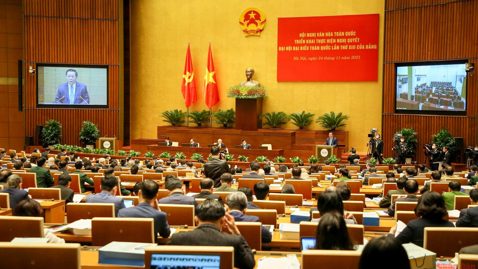 Thấm nhuần tư tưởng của Chủ tịch Hồ Chí Minh “Xây dựng nền văn hóa mới của nước nhà phải lấy hạnh phúc của đồng bào, của dân tộc làm cơ sở”, “văn hóa soi đường quốc dân đi”, dưới sự lãnh đạo của Đảng, Quốc hội với tư cách là cơ quan đại biểu cao nhất của Nhân dân, cơ quan quyền lực nhà nước cao nhất, đại diện cho ý chí và nguyện vọng của Nhân dân, luôn chú trọng thể chế hóa các quan điểm, chủ trương của Đảng, tăng cường hoạt động giám sát, thông qua các quyết sách quan trọng nhằm phát triển văn hóa, con người Việt Nam đáp ứng yêu cầu phát triển bền vững đất nước.