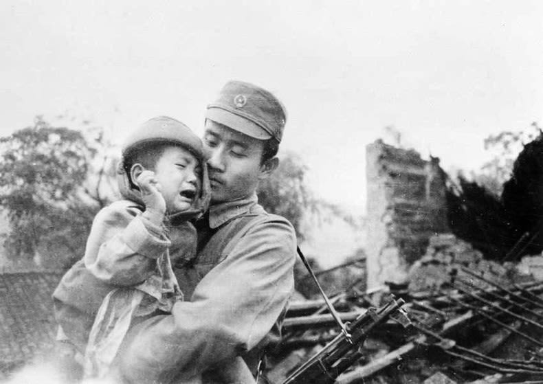 Chiến sĩ biên phòng Ngô Duy Nhung cứu sống kịp thời một cháu bé từ trong đống đổ nát trong cuộc chiến đấu bảo vệ biên giới năm 1979. (Ảnh: Ngô Đình Phước/TTXVN)