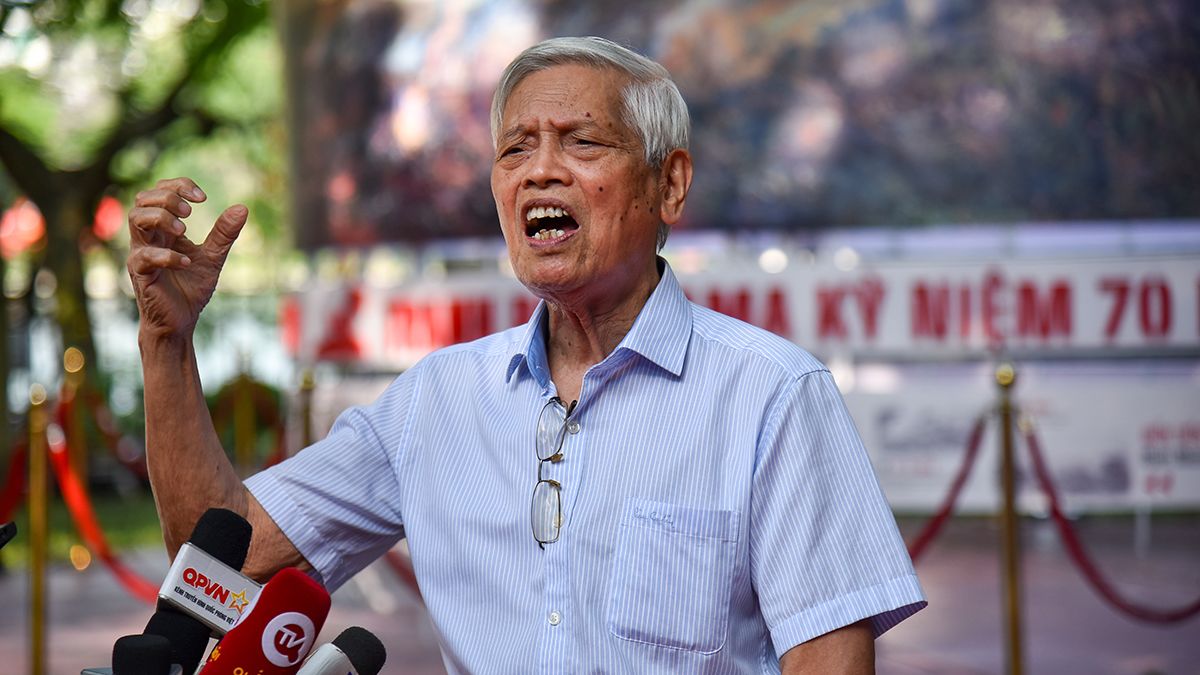 Nhạc sĩ Doãn Nho hát ca khúc "Tiến bước dưới quân kỳ" tại Triển lãm panorama kỷ niệm 70 năm Chiến thắng Điện Biên Phủ.