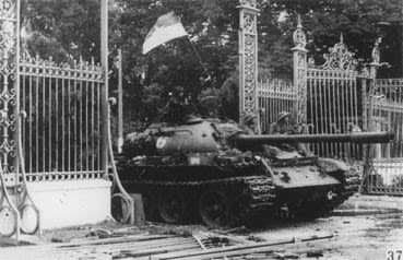 11 giờ 30 phút ngày 30-4-1975 quân ta chiếm Dinh Độc Lập. (Ảnh tư liệu)