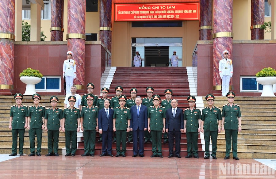 Đồng chí Tô Lâm với cán bộ, giảng viên Học viện Quốc phòng và các đại biểu tại Lễ khai giảng năm học 2024-2025 của Học viện Quốc phòng (12/9/2024). (Ảnh: Đăng Khoa)