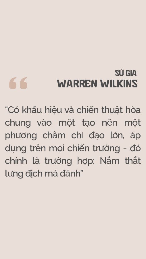 Có khẩu hiệu và chiến thuật hòa chung vào một tạo nên một phương châm chỉ đạo lớn, áp dụng trên mọi chiến trường - đó chính là trường hợp: Nắm thắt lưng địch mà đánh.