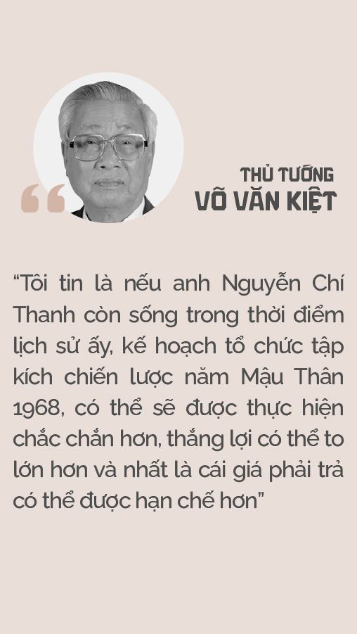 Tôi tin là nếu anh Nguyễn Chí Thanh còn sống trong thời điểm lịch sử ấy, kế hoạch tổ chức tập kích chiến lược năm Mậu Thân 1968, có thể sẽ được thực hiện chắc chắn hơn, thắng lợi có thể to lớn hơn và nhất là cái giá phải trả có thể được hạn chế hơn.