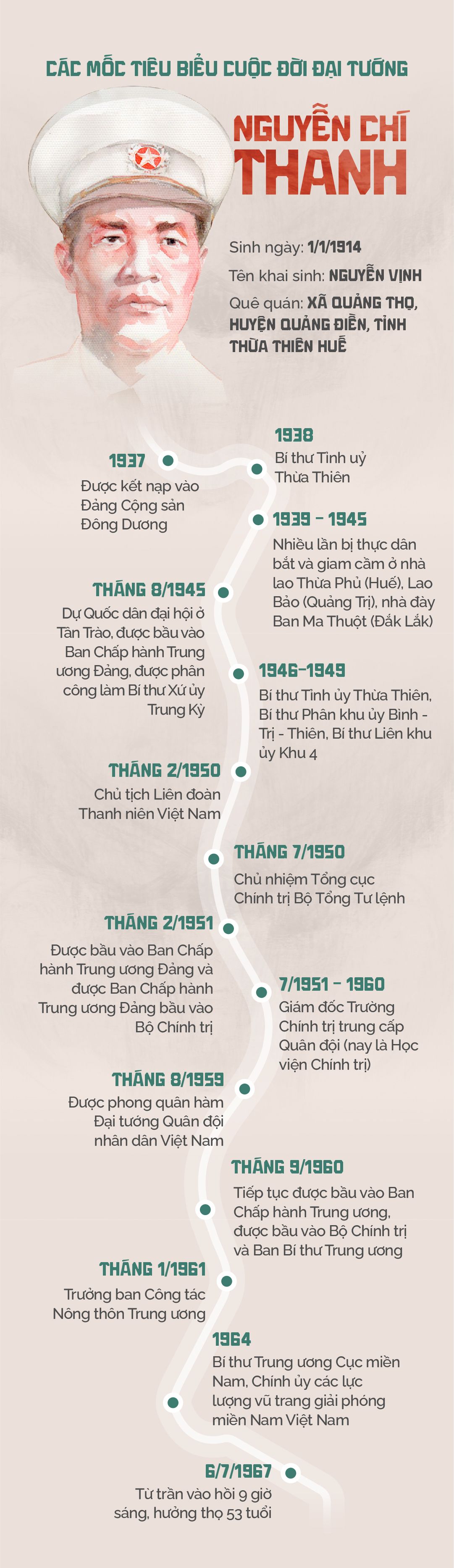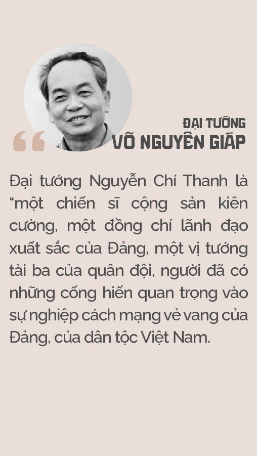 Là học trò xuất sắc của Chủ tịch Hồ Chí Minh, người chiến sĩ cộng sản kiên trung, mẫu mực, người con ưu tú của dân tộc Việt Nam, với tác phong bám sát thực tiễn và tư duy chiến lược, Đại tướng Nguyễn Chí Thanh hoàn thành xuất sắc mọi nhiệm vụ mà Đảng, Nhà nước, Quân đội và nhân dân giao phó. Tên tuổi của Đại tướng gắn liền với những thời điểm có tính chất bước ngoặt của cách mạng Việt Nam, đặc biệt là những đóng góp quan trọng cho việc xây dựng và củng cố quyết tâm chiến đấu để đánh thắng quân xâm lược Mỹ.