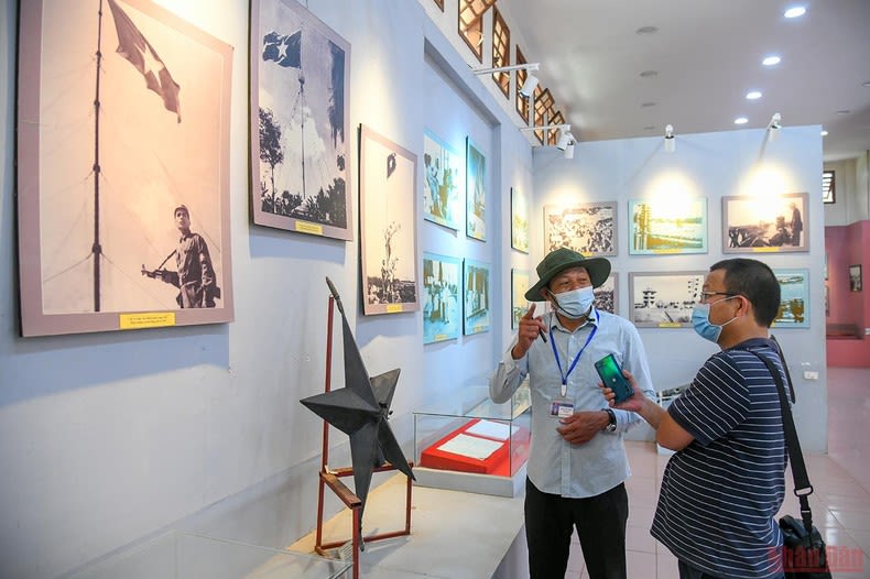 Ông Trần Văn Minh - Phó Ban quản lý Cụm di tích Đôi Bờ Hiền Lương - Bến Hải chia sẻ cùng phóng viên Báo Nhân Dân. (Ảnh: THÀNH ĐẠT)