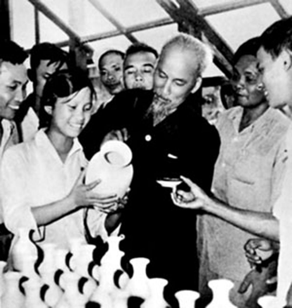 Bác Hồ thăm Nhà máy Thuốc lá Thăng Long, năm 1960.