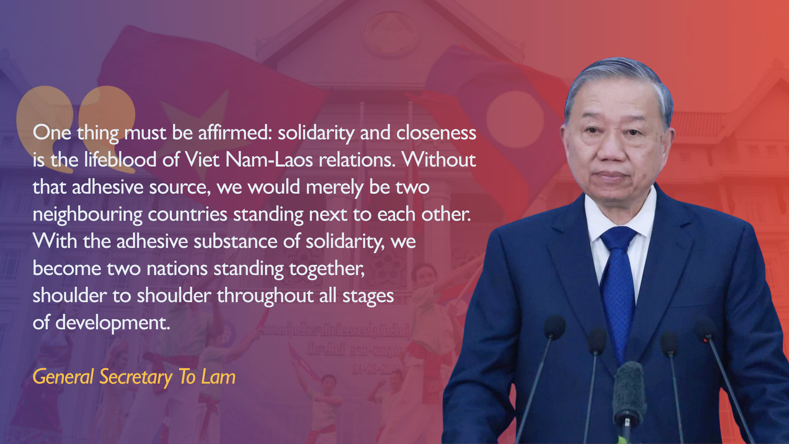 According to the General Secretary, the special solidarity between Viet Nam and Laos is the only right choice — a historically inevitability of strategic survival. The two nations have realised that: “To survive and develop, we must stand together.”