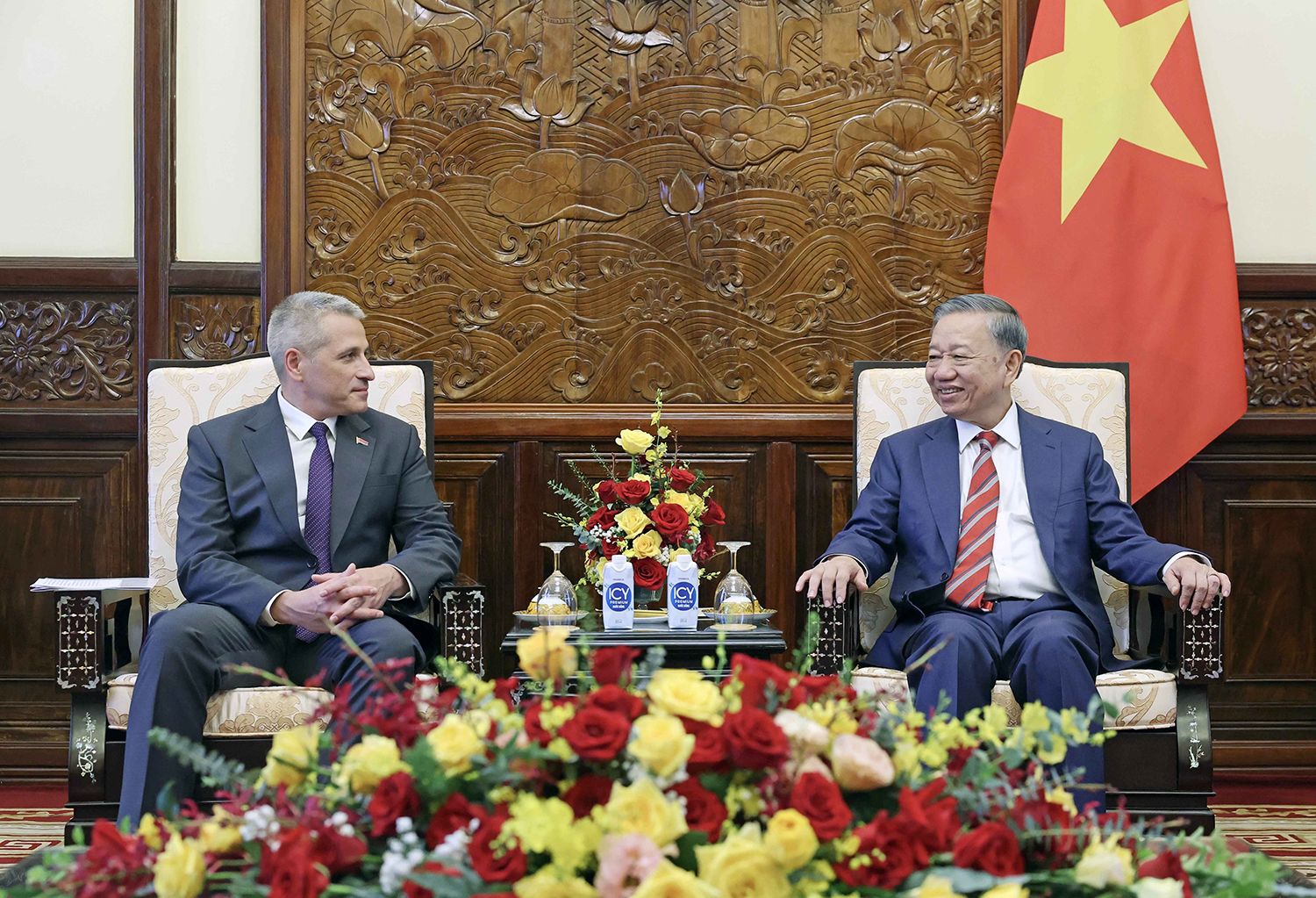 El entonces presidente To Lam recibe al embajador de Bielorrusia en Vietnam, Uladzimir Baravikou, el 3 de julio de 2024. (Foto: VNA)