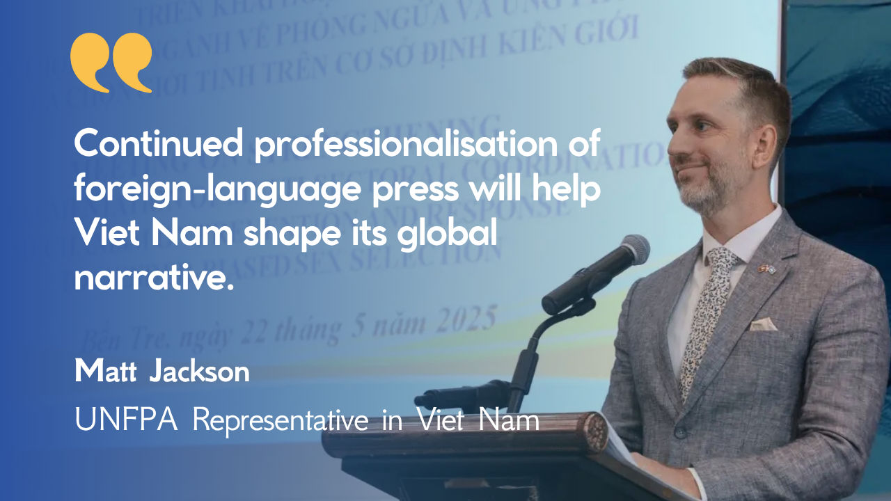 Commenting on the development of foreign-language press in Viet Nam as a means of enhancing external relations information work, Matt Jackson, United Nations Population Fund (UNFPA) Representative in Viet Nam, described the expansion of foreign-language content as a welcome and strategic advancement.