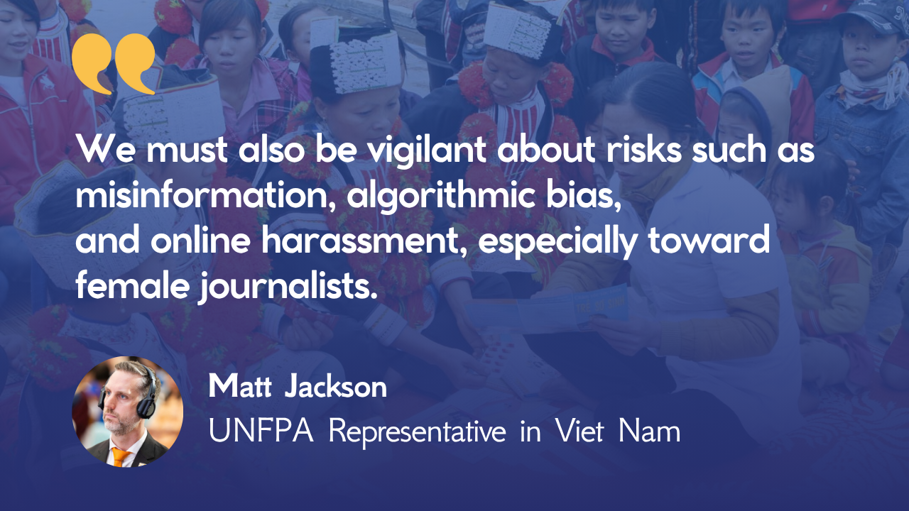 “At UNFPA, we’ve seen how technology-enabled press helps deliver essential information on reproductive health, gender-based violence, and population issues to otherwise hard-to-reach communities. For instance, we can reach thousands of young people with scientifically grounded, rights-based messages. However, we must also be vigilant about risks such as misinformation, algorithmic bias, and online harassment, especially toward female journalists,” Jackson warned.