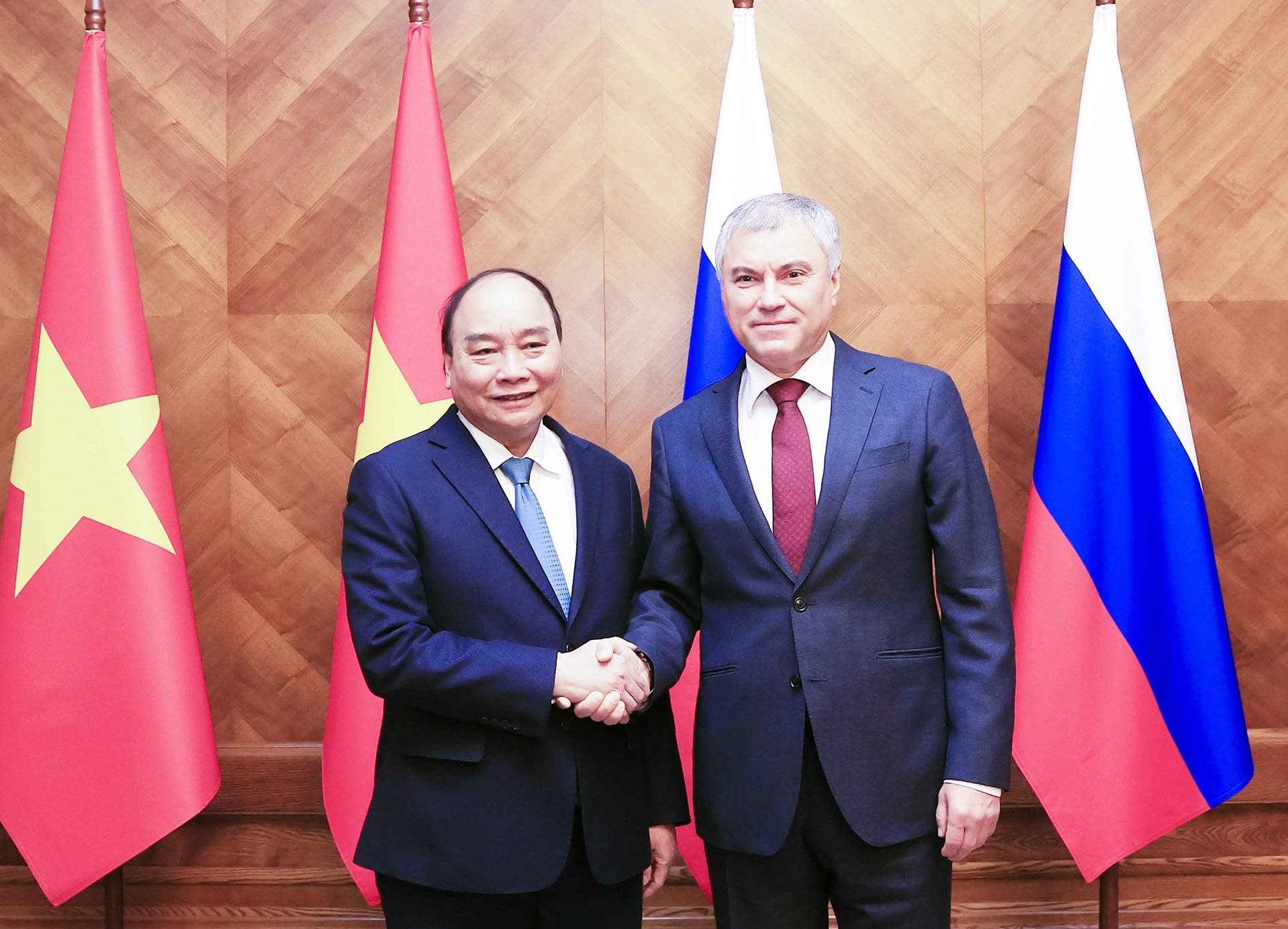 在对俄罗斯进行正式访问的框架内,越南国家主席阮春福分别会见俄罗斯联邦政府总理米哈伊尔·米舒斯京(Mikhail Mishustin)、俄罗斯联邦委员会主席瓦莲京娜•伊万诺芙娜•马特维延科(Valentina Matvienko)和俄罗斯联邦国家杜马主席维亚切斯拉夫·沃洛金(Vyacheslav Volodin)等俄罗斯领导人。