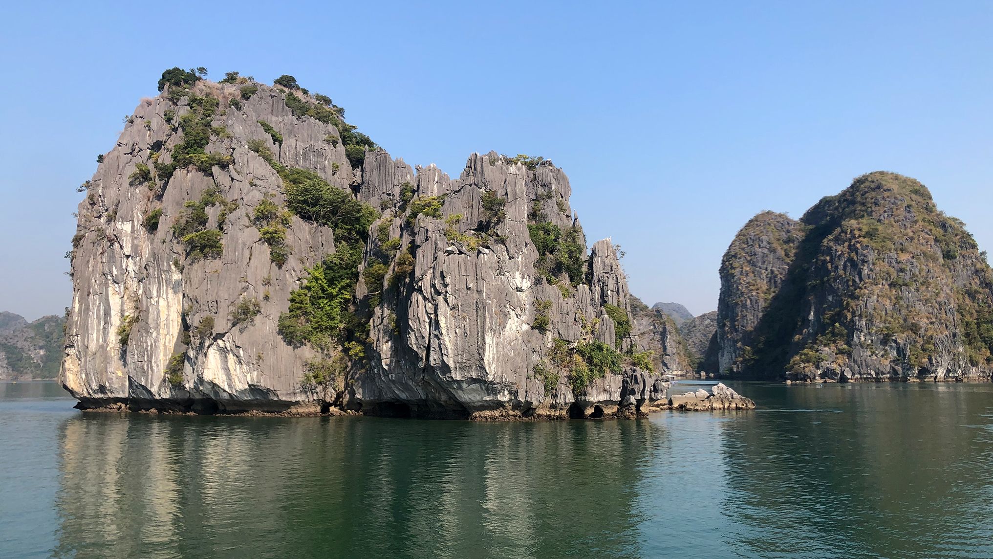 The limestone islands in Cat Ba are similar to those in Ha Long Bay.