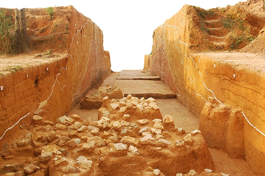 Địa tầng và mặt bằng hố khai quật thành Ngoại năm 2012. (Ảnh: Ban quản lý di tích Cổ Loa)