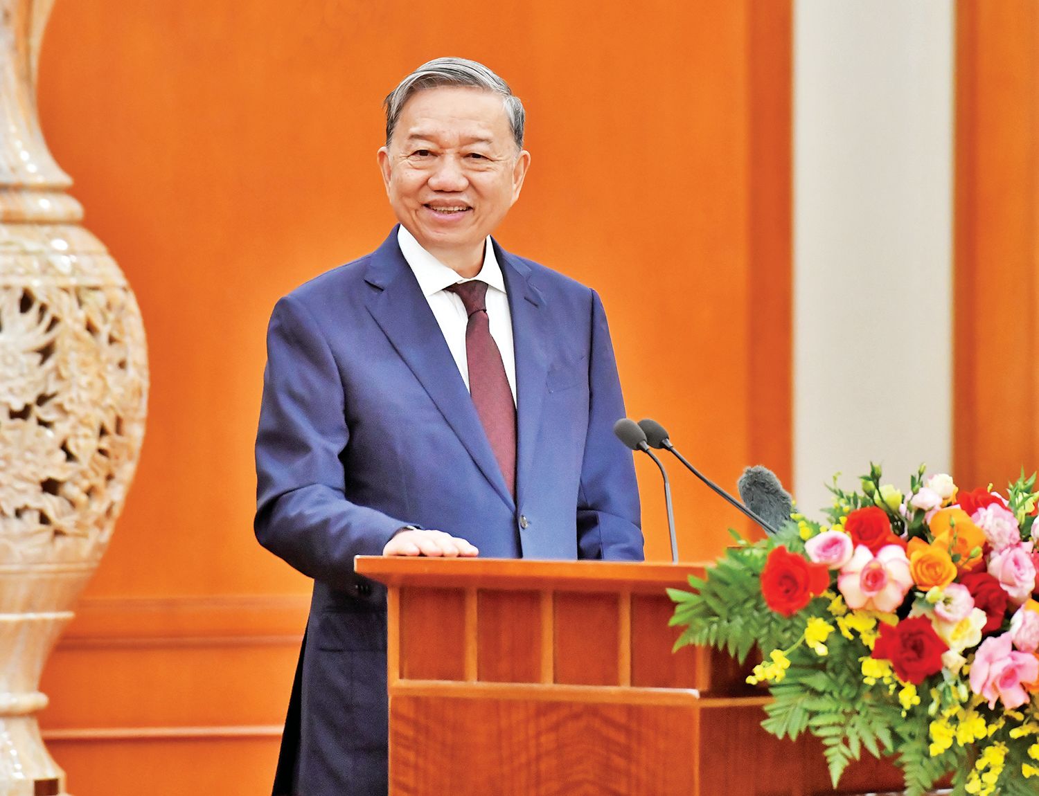 记者:越共十四大被确定为新纪元—民族崛起的纪元的开端,全民族在党的领导下同心协力推动国家全面、强劲、突破发展。请问总书记同志,为了坚定进入新时代,2025年我们的重点任务是什么?