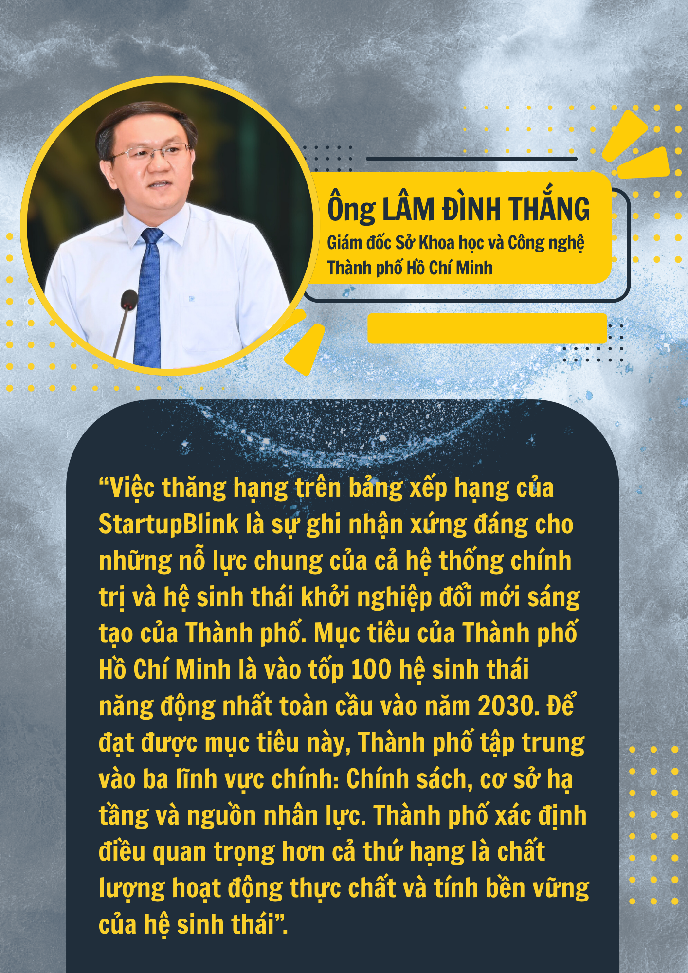 Dù vậy, việc thăng hạng trên bảng xếp hạng của StartupBlink là một sự ghi nhận xứng đáng cho những nỗ lực chung của cả hệ thống chính trị và hệ sinh thái khởi nghiệp đổi mới sáng tạo của Thành phố Hồ Chí Minh. Đồng thời, là cơ hội để địa phương này nhìn nhận và tái định vị vị trí của thành phố trong mặt bằng hệ sinh thái khởi nghiệp đổi mới sáng tạo toàn cầu.