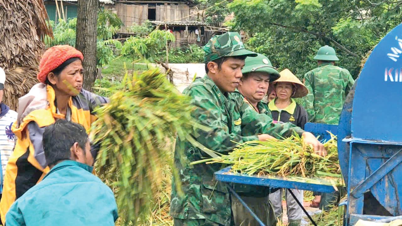 Cán bộ chiến sĩ Đồn Biên phòng cửa khẩu Quốc tế Cha Lo (Quảng Bình) giúp bà con thu hoạch vụ mùa.