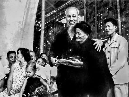 Chủ tịch Hồ Chí Minh tặng quà cho cụ già người dân tộc thiểu số tại tỉnh Lào Cai, tháng 9/1958.