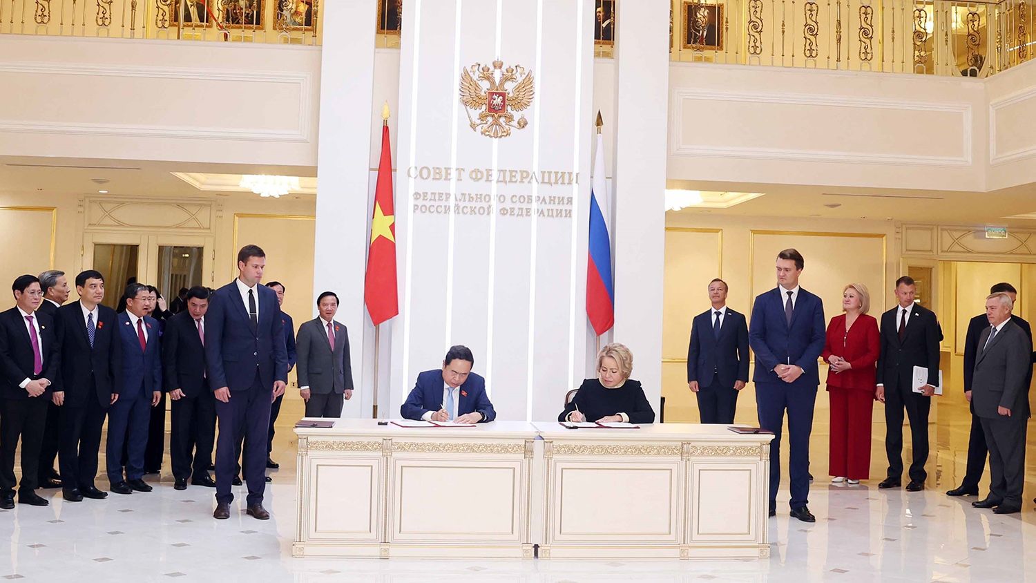 Después de la reunión, ambos dirigentes firmaron un acuerdo de cooperación entre la Asamblea Nacional de Vietnam y el Consejo de la Federación Rusia.