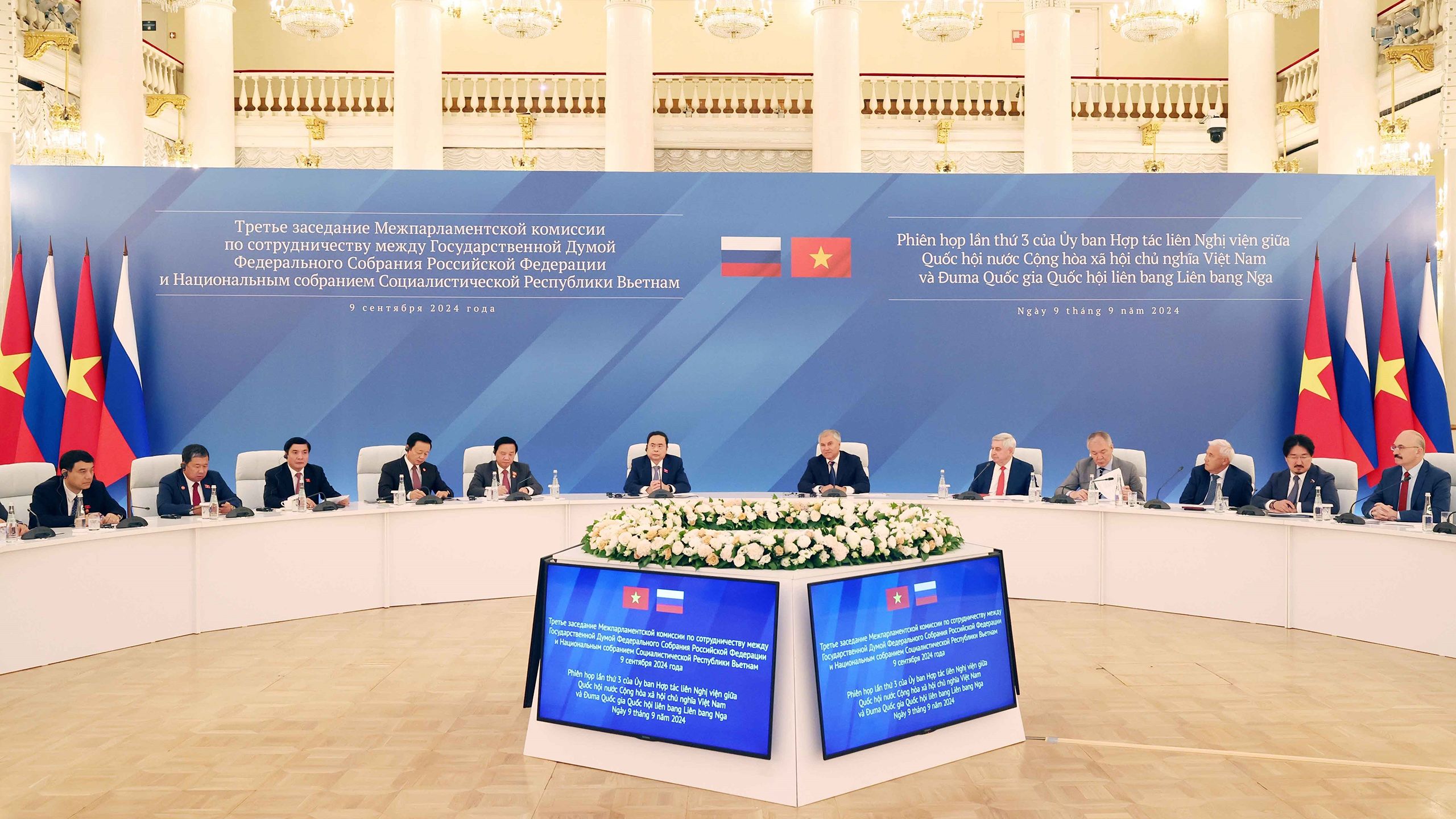 Con motivo de la visita, el máximo dirigente legislativo vietnamita, Tran Thanh Man, y el presidente de la Duma Estatal de Rusia, Viacheslav Viktorovich Volodin, copresidieron la tercera reunión del Comité de Cooperación Interparlamentaria entre las dos entidades parlamentarias.