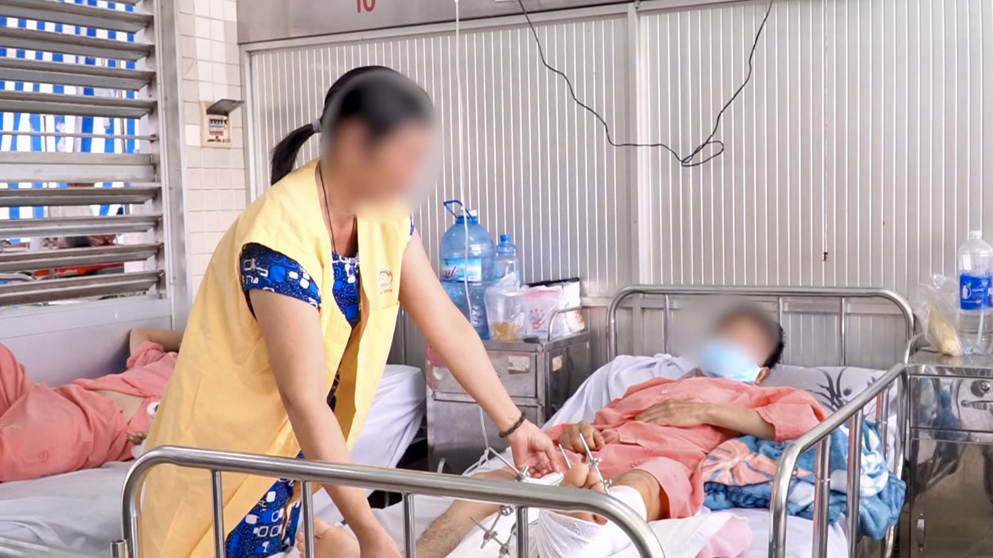 Người thân chăm sóc cho bệnh nhân S. sau ca phẫu thuật nối chi.